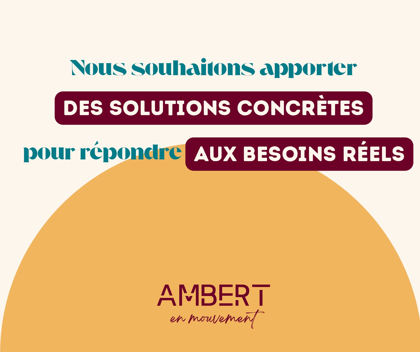 Parce qu’Ambert a besoin d’un nouveau souffle, notre équipe propose un projet clair, humain et ambitieux. Ces engagements sont le fruit de dizaines de rencontres et d’une volonté commune : faire mieux, ensemble.