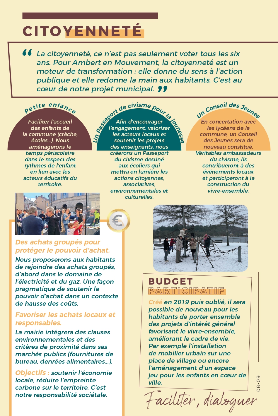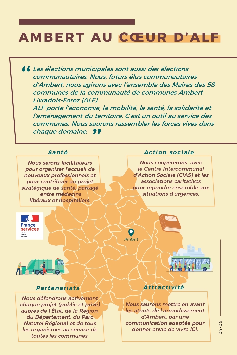 Parce qu’Ambert a besoin d’un nouveau souffle, notre équipe propose un projet clair, humain et ambitieux. Ces engagements sont le fruit de nos rencontres et d’une volonté commune : faire mieux, ensemble.