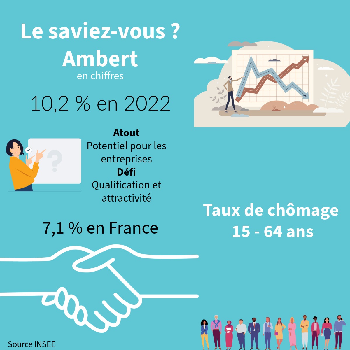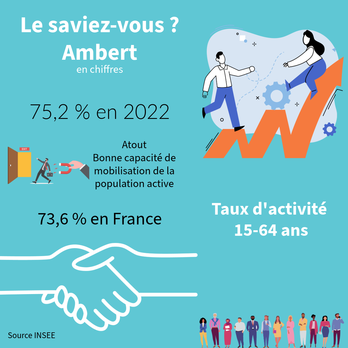 À Ambert, le taux d’activité des 15–64 ans atteint 75,2 % (2022).